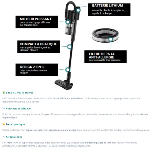 préfiltre pour grosses poussières et 1 filtre anti-allergie HEPA 14