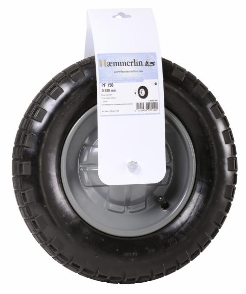 Roue standard gonflée, avec pneu pavé longue durée.
