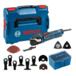 livré en coffret L-BOXX avec 9 lames plongeantes, 1 lame segment, 1 plateau de ponçage, 5 feuilles abrasives.