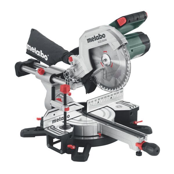 livrée avec lame carbure 48 dents, 2 rallonges latérales de table, butée de tronçonnage, pince de serrage, outil pour le changement de la lame, enroulement de câble, sac collecteur de sciures.