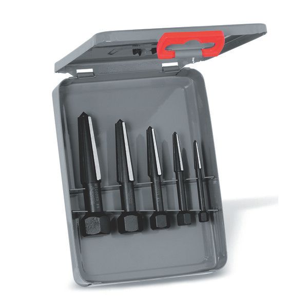 Pour l'extraction sans dommage de vis ou boulons filetés cassés hors des alésages filetés : pré percer la vis à retirer avec l'aléseur adapté, enfiler l'extracteur dans le trou et dévisser la vis utilisable pour filetage à droite ou à gauchecomposé d'extracteurs pour vis M5 - M6, M8 - M10, M10 - M12, M12 - M16 et M16 - M20 dimensions : 1 - 2 - 3 - 4 - 5 mm.