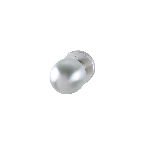 Bouton HOPPE en inox sur rosace, pour porte d’entrée (côté extérieur).