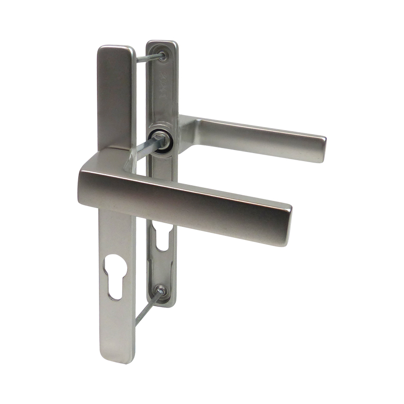 Carré serti sur béquille extérieure, fixation par vis pointeau sur béquille intérieure.