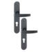 Garniture complète en aluminium anodisé sur plaque fondue pour porte intérieure.