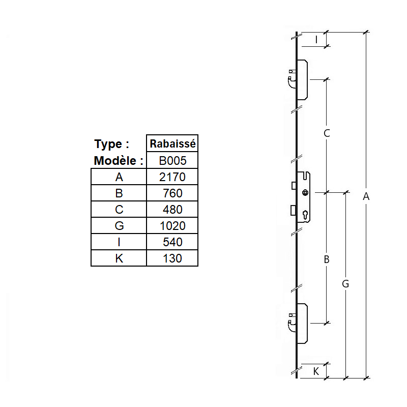 | Type points de fermeture auxiliaires | Pêne rond et crochet |