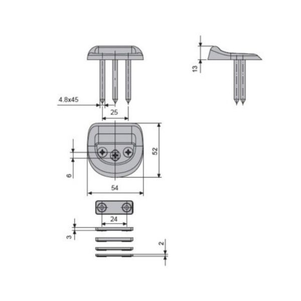 Gâche acier inox pose au sol pour pêne verticale bas et apte pour portes coupe-feu.