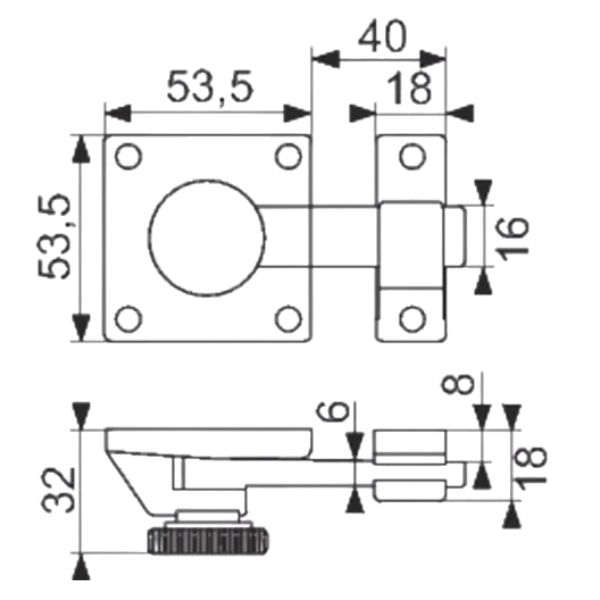 Fléau targette chromé avec gâche à plat