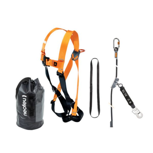 (dorsal et sternal), d'un antichute mobile sur cordage de 10m, d'un anneau de sangle 1m et d'un sac de transport.