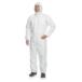 Combinaison en SMS avec capuche élastiquée en 2 parties, élastiques poignets, taille et chevilles, fermeture à glissière sous rabat adhésif.